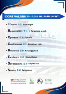 We also believe in our responsibility as educators to provide a firm foundation of character building of values, to develop strength and resilience in our students for the challenges of life in an ever changing globalized world, even beyond their school years.